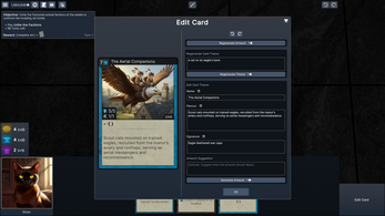 Also, I don't think you realize how little having a full card game integrated in with ChatGPT is as a selling point. With a freeform RPG, my choices are literally limited to my imagination, whereas with this card game you've included, I'm literally locked into decisions based on the cards I have in my hand, even if those represent decisions I wouldn't make in the situation. Essentially, ChatGPT is substitute for a living GM, whereas having to play within the framework of a card game restricts my decisions to much smaller number of choices, and as somebody who comes from a tabletop RPG background, I don't find that to be a good thing.