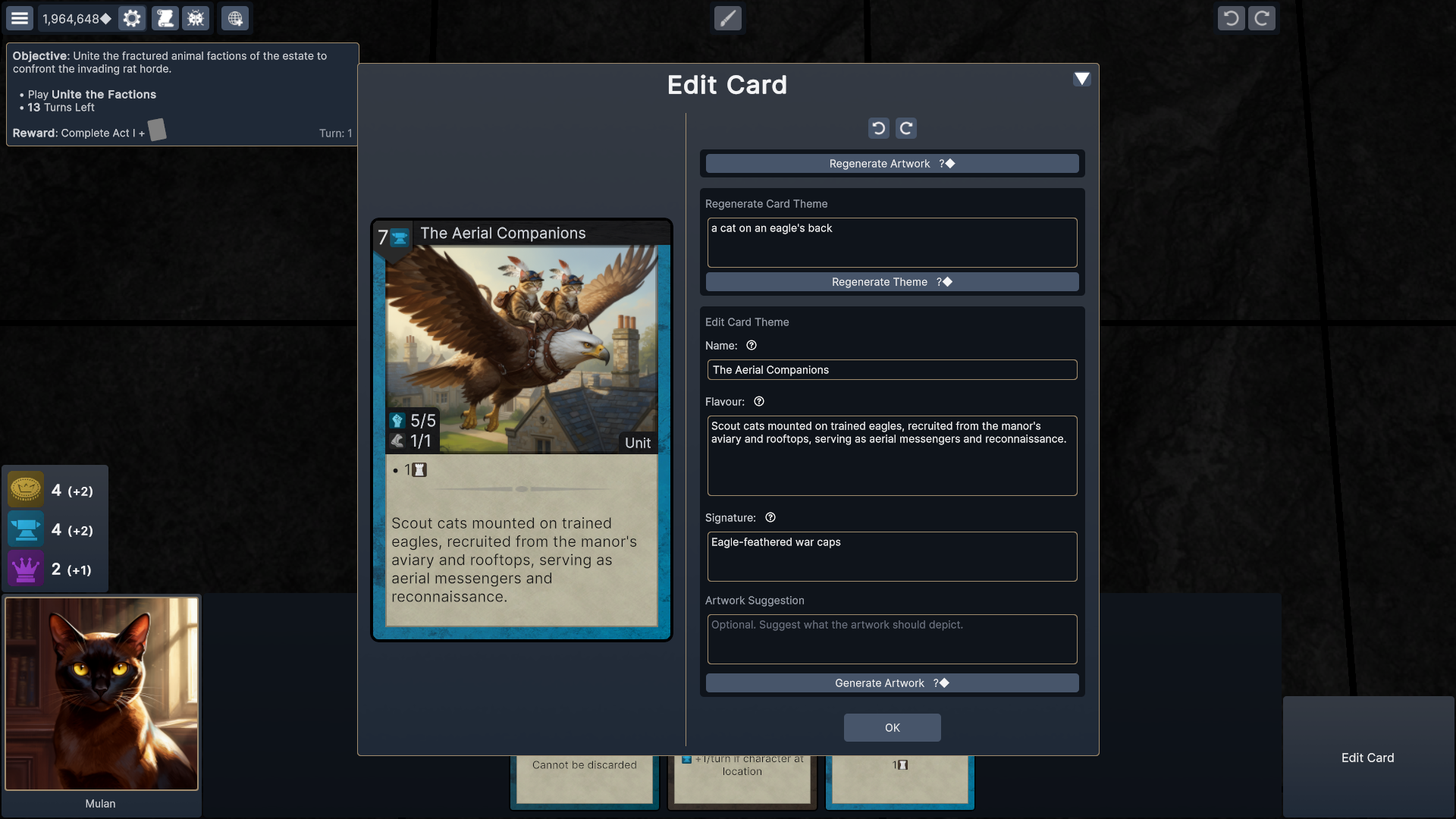 A solo card game where AI generates cards and story based on any setting you describe - and reacts to everything you do.